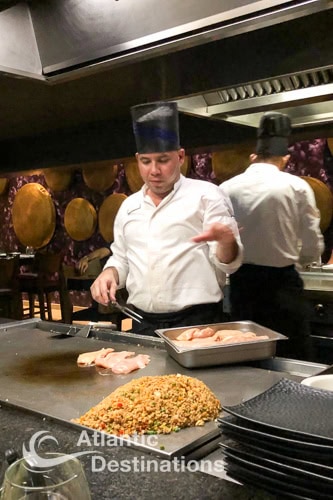 Some all-inclusive resorts such as Lopesan include nationally-themed restaurants such as this Japanese-style teppanyaki eatery where the chefs make the food in front of the diners in a very entertaining fashion.